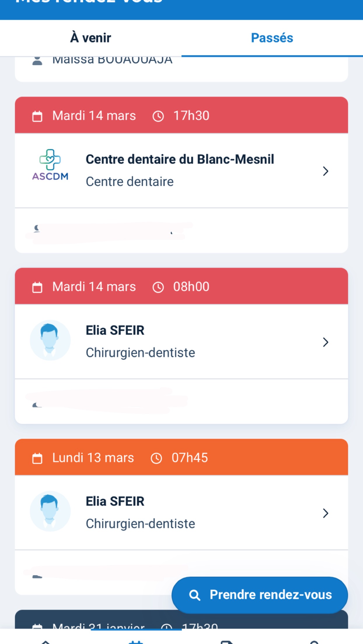 Posté le 25/03/2021 à 16:50"Depuis le mois de novembre mes RDV sont annulés à 17h30 pour cause de confinement trop tard, donc RDV à 17h00, j'attends plus d'une demi heure dans la salle d'attente donc après 17h30! nouveau RDV 2 semaines après RDV annulé le jour même à 9h00 du matin pour cause de non reçu prothèse du labo!! 1 semaine après je suis toujours en attente d'un RDV pour poser ma prothèse le labo n'a toujours pas livré! lamentable!!! Le professionnalisme du personnel est un peu à revoir, pour sensibiliser leurs prestataires en occurrence le labo! Il faut revoir leurs méthodes en sachant que des nouveaux centres dentaires s'ouvrent au Blanc Mesnil!!!!"